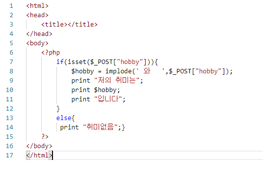 1. 전 페이지(form.html)에서 선택한 건 스포츠,영화감상,독서 의 3개