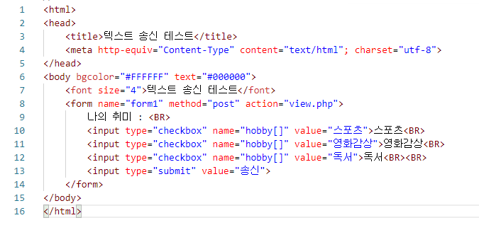 2. [송신]을 누르면 다음 페이지[view.php]로 이동
