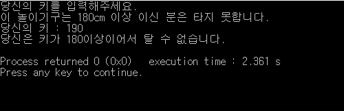 printf("당신은 키가 180이상이어서 탈 수 없습니다. \n");