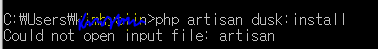 해당 문제는 실행시킨 장소에 artisan 이 없어서 였는데, 정작 artisan 이 있는 폴더에 들어가서 하니 밑의 오류가 발생했다.
