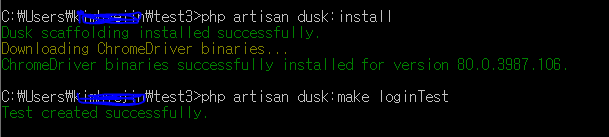 dusk 파일을 만드는 명령어는 'php artisan dusk:make '원하는 파일명' ' 이다.