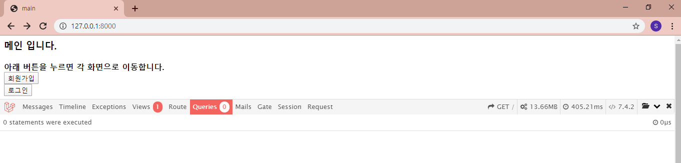 초기설정에선 저기 return view('main'); 부분에서 main 이 아닌 welcome으로 되어있을 것이다.