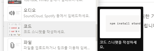 그리고 개발자들이 많이 쓰는 걸 아는지, 깃허브도 임베드 할 수 있다.