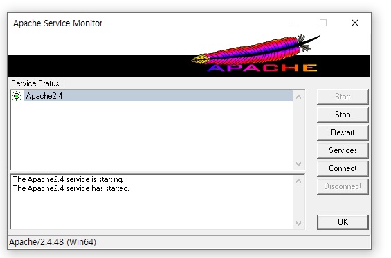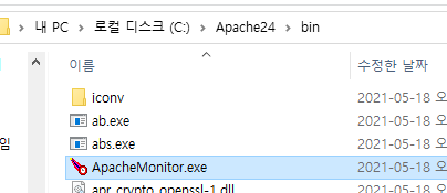 다 설치했다면, C:/\Apache24\bin 으로 이동하여 아래 모니터 프로그램을 켠다.