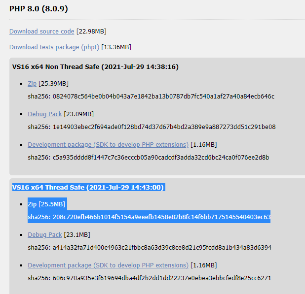 PHP 7.3 (7.3.29) Download source code [27.11MB] Download tests package (phpt) [14.31MB] VC15 x64 Non Thread Safe (2021-Jun-29 15:51:46) Zip [24.44MB] sha256: e74ba7c95e57bc0ea540531f1a9cba3ce132d585966b760e630e3395e6faa550 Debug Pack [23.09MB] sha256: 09fb